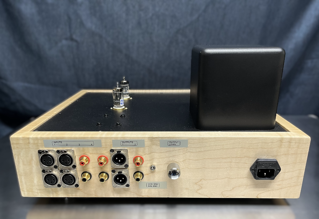 The Jackpot features a single chassis design using a 5U4GB rectifier, a 12AU7 output stage and your choice of a 12AU7, 12AT7, 5751, or 12AX7 front end. The output level control is used to go from unity gain (gain =1), for very sensitive amplifiers, to a gain of up to 40db (12AX7 gain control at MAX) to drive low sensitivity amplifiers. The sound is more dynamic and “fast” using the higher gain tubes, and more “warm” and full-bodied using the lower gain tubes. Both balanced and unbalanced versions of this linestage are available, and it features an all film capacitor power supply filter section, Toroidal power transformer, Vishay resistors throughout and Clarity Cap CMR series coupling capacitors.